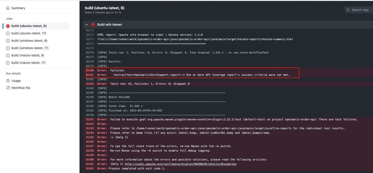 Specmatic can be configured to enforce the above success criteria and fail the build if either any of them are not met.