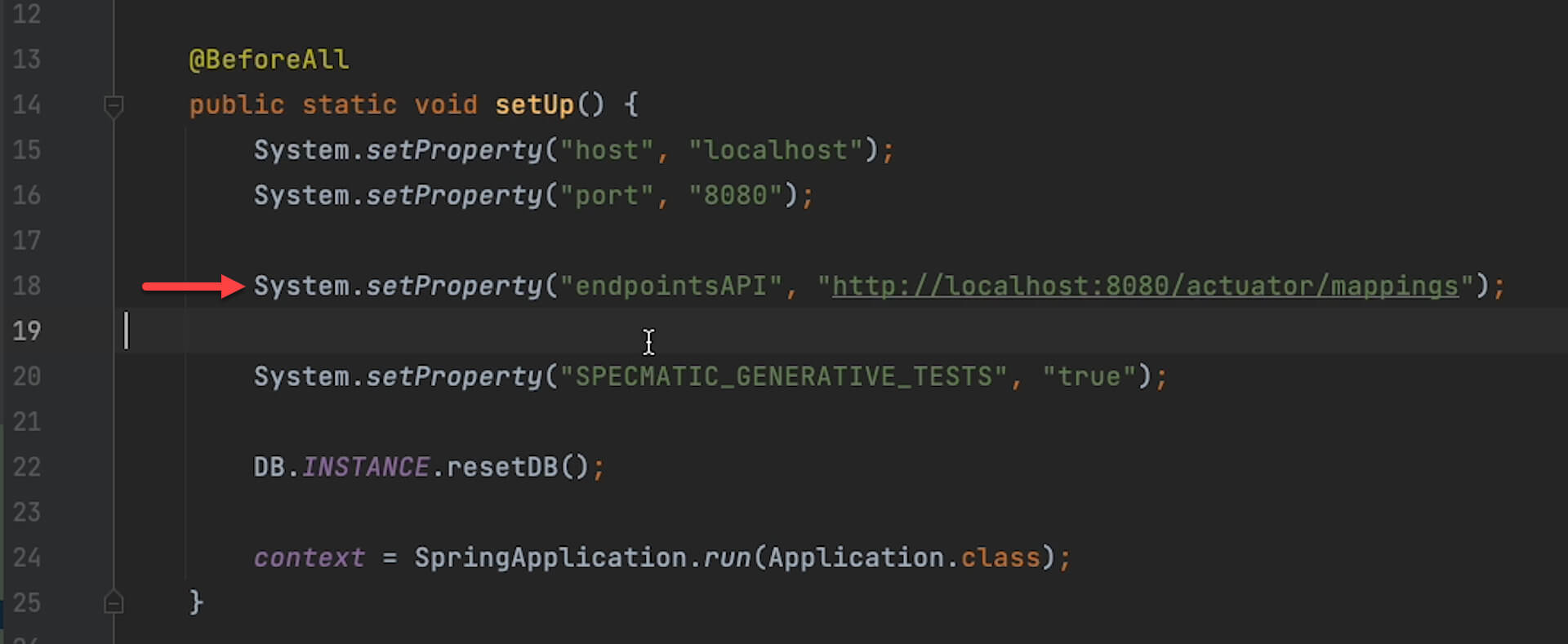 When running a contract test, the key aspect to note is the Endpoints API property, through which Specmatic will determine all the endpoints implemented in the app.